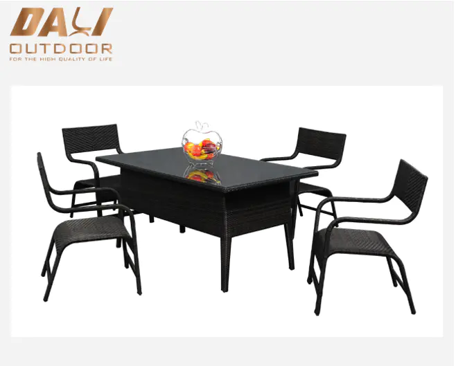 Advantages: Stainless steel furniture has a sleek appearance, is durable, and can withstand exposure to varying weather conditions. Regular cleaning may be required to maintain its look.
